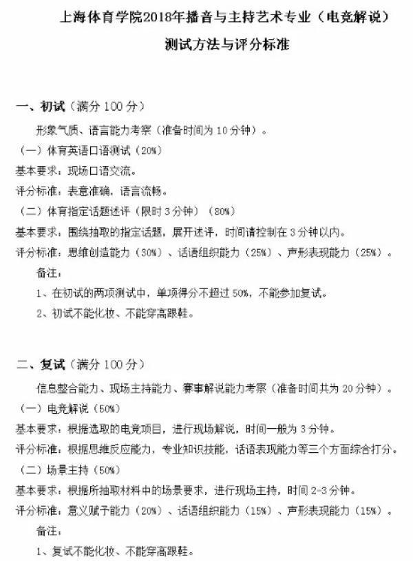 上海体育学院电竞解说招生要求。